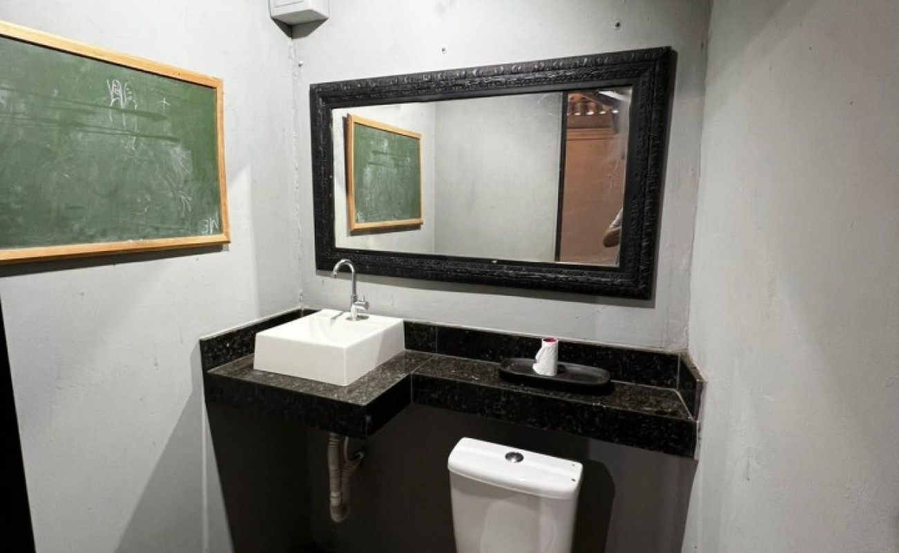 1 area de lazer com pia e churrasqueira,banheiro