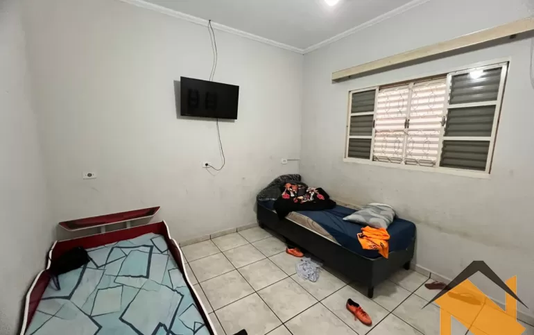 3 dormitórios,sala,copa,cozinha,banheiro social,lavanderia,banheiro externo e dormitório.