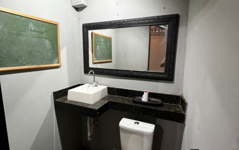 1 area de lazer com pia e churrasqueira,banheiro